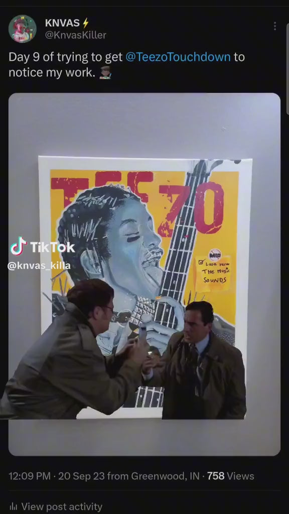 Experience the dynamic energy of Teezo Touchdown captured in this exclusive mixed media art piece by Knvas. Combining diverse materials and textures, this artwork brings the artist’s vibrant spirit and unique style to life, making it a striking addition to any collection. Elevate your space with a bold statement that celebrates creativity and musical innovation.